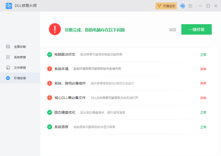 一键自动检测电脑缺失的运行库和DirectX文件,自动修复各类dll缺失等问题,无任何操作难度,小白友好